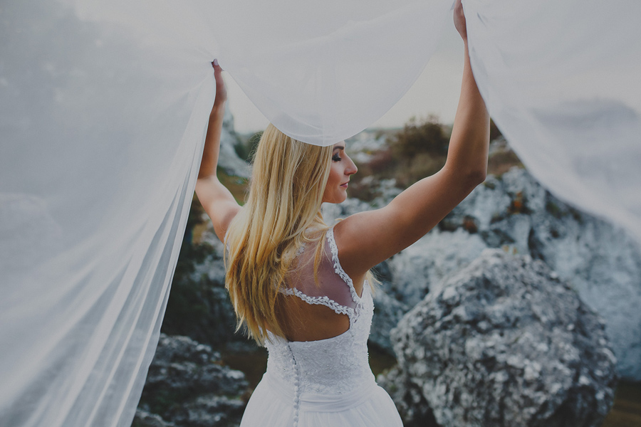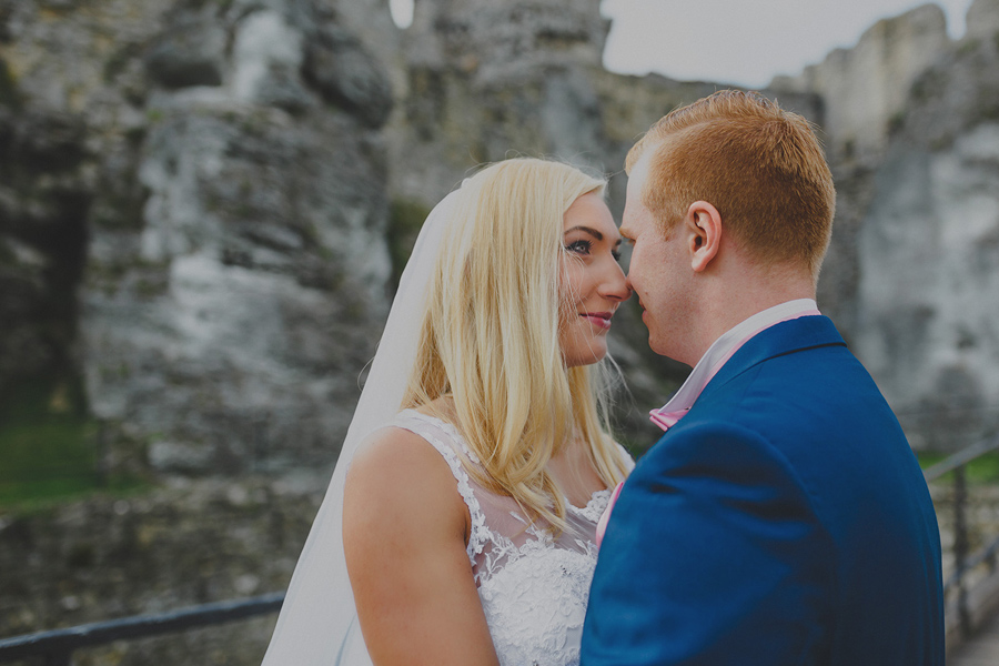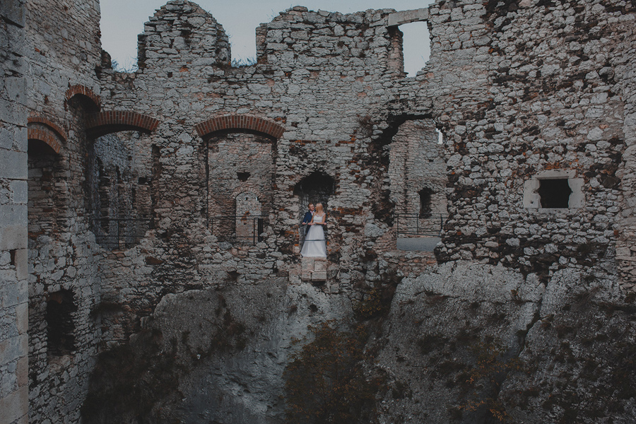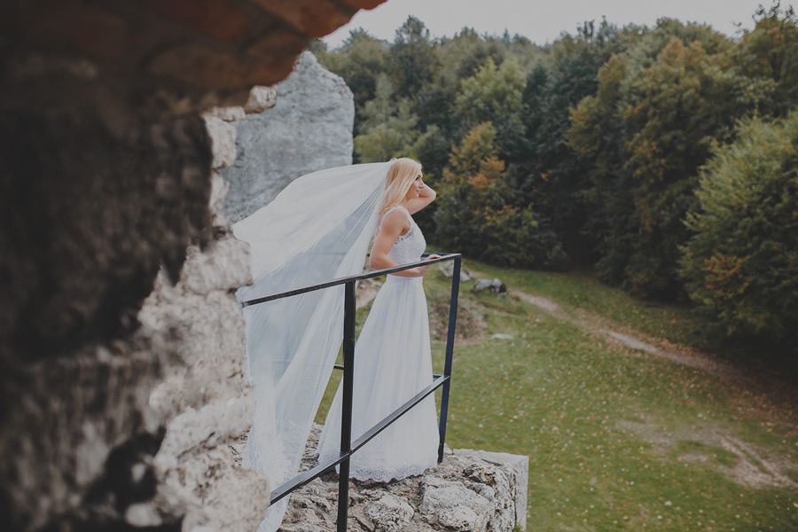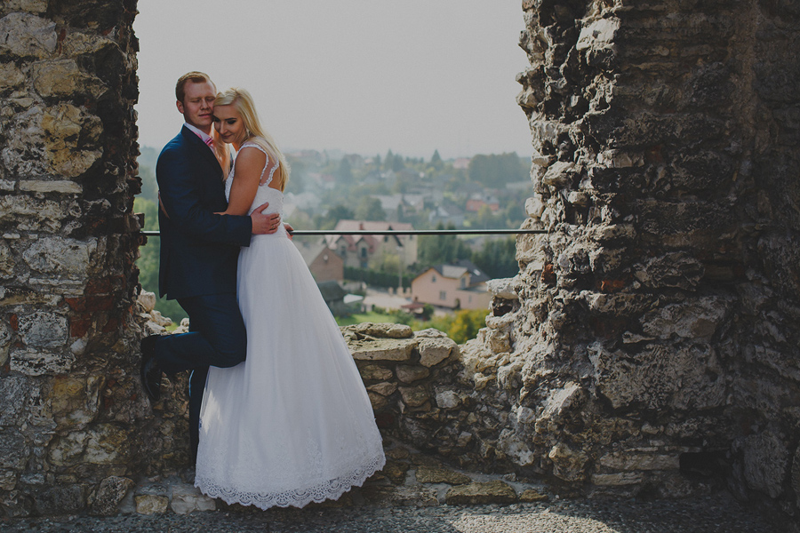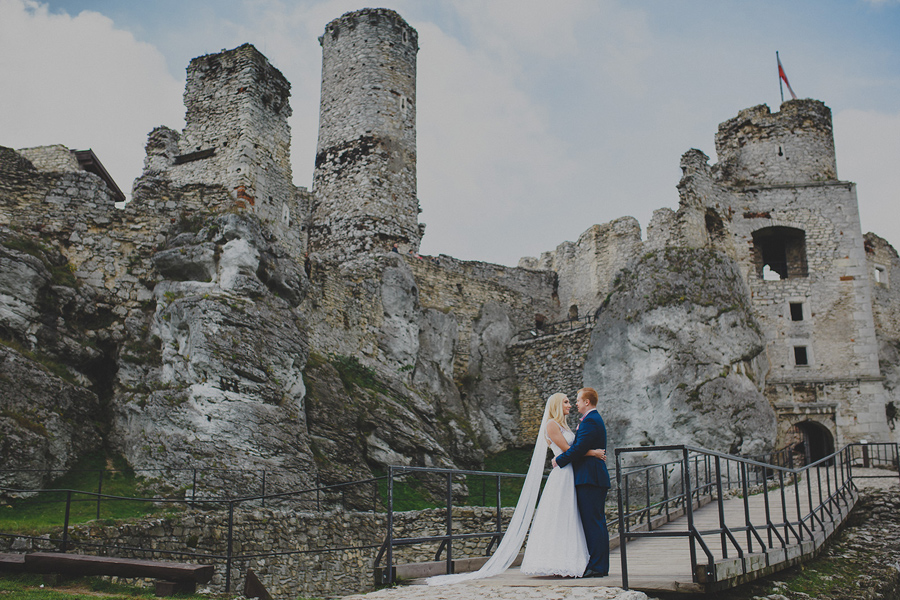 Pamiętacie szalone wesele Agnieszki i Łukasza? Jeśli nie to możecie je obejrzeć tutaj. Na sesję nowożeńcy wybrali ruiny zamku Ogrodzieniec. Umówiliśmy się tam w pewien październikowy dzień. Było pięknie aczkolwiek dość chłodno. Miało to ewidentny plus – nie było tłumów więc nie trzeba było czekać aż tłumy przejdą i będzie można zrobić zdjęcie. Albo co gorsze, wstrzymywać tłumy. Choć zazwyczaj ludzie widząc Parę Młodą są bardzo wyrozumiali i cierpliwie czekają 🙂